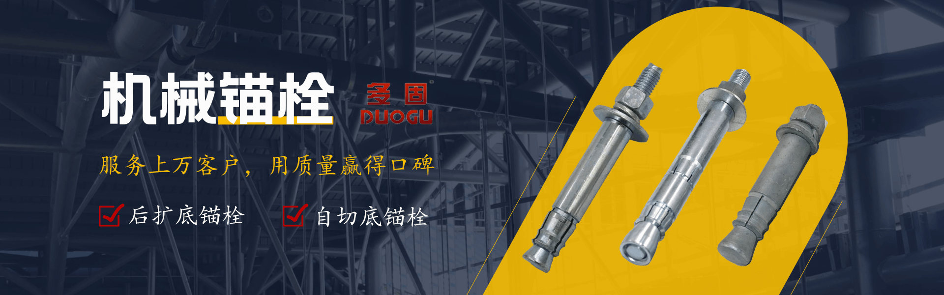 多固已經(jīng)從事機(jī)械錨栓、化學(xué)錨栓生產(chǎn)制造15余年,專(zhuān)注于錨固系統(tǒng)的解決方案